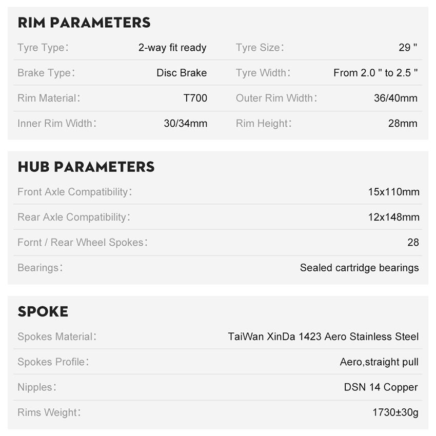 Juego de Ruedas de Bicicleta de Montaña de Fibra de Carbono 29er, Boost 110mm, Aero, Radios Rectos, con 28 Orificios