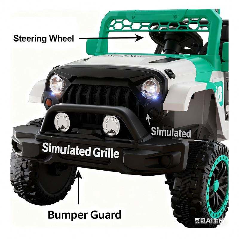 TOYSRUNNER Auto Eléctrico para Niños, Funciona con Batería, Luces LED, Música, Bocina, Control Remoto, Motor de Doble Tracción, Plástico Resistente