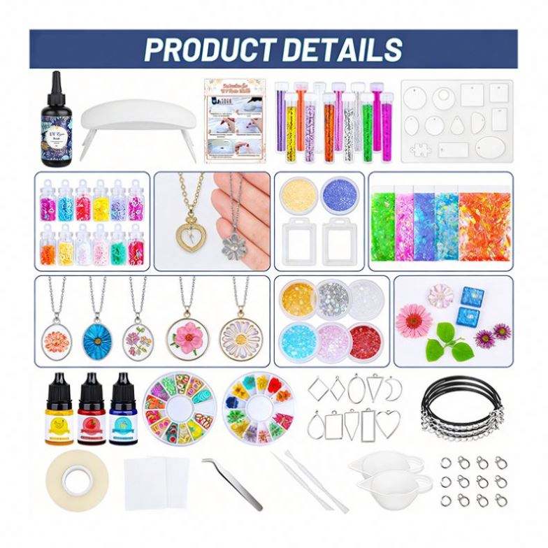 TOYSRUNNER Kit de Llaveros DIY, Resina UV, Lámpara LED, Moldes de Silicona, Láminas de Purpurina, Flores, Colgantes