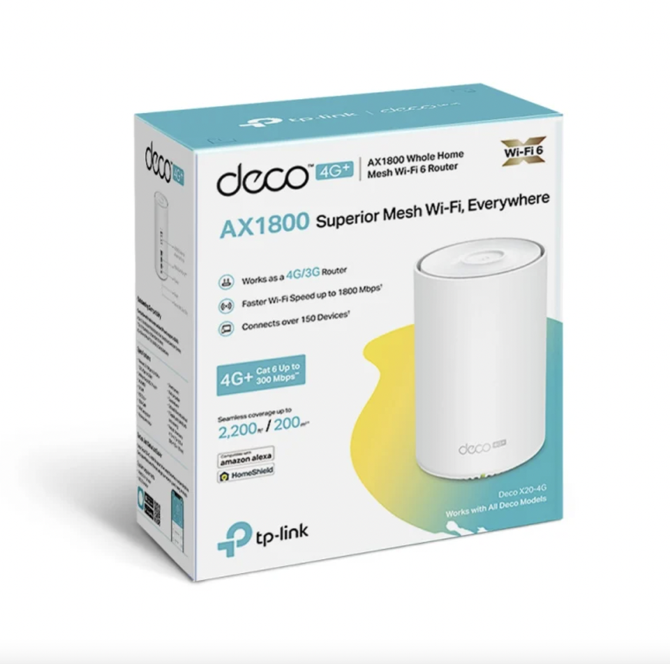 TP-link Deco X20-4G 4G+ AX1800, Enrutador WiFi 6 de Doble Banda para Todo el Hogar con Soporte VoIP, 1000 Mbps (1 unidad), WPS/WDS
