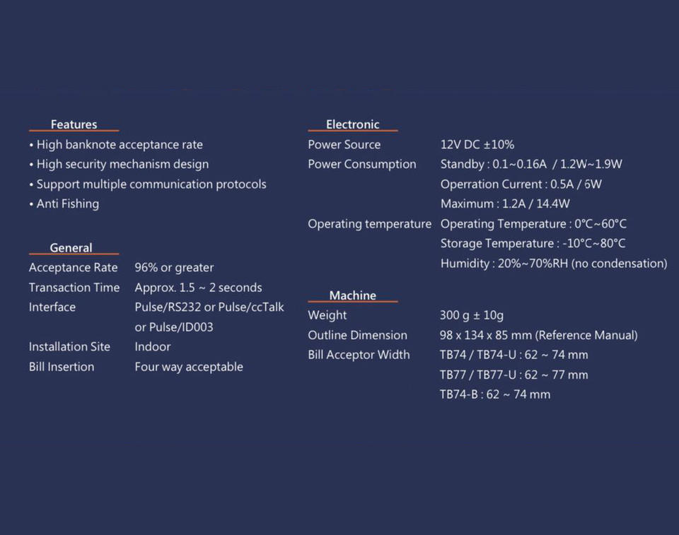 INTERFACE:PULSE / MDB / BINAR / PARALLEL / CC TALK / Serial / SSP