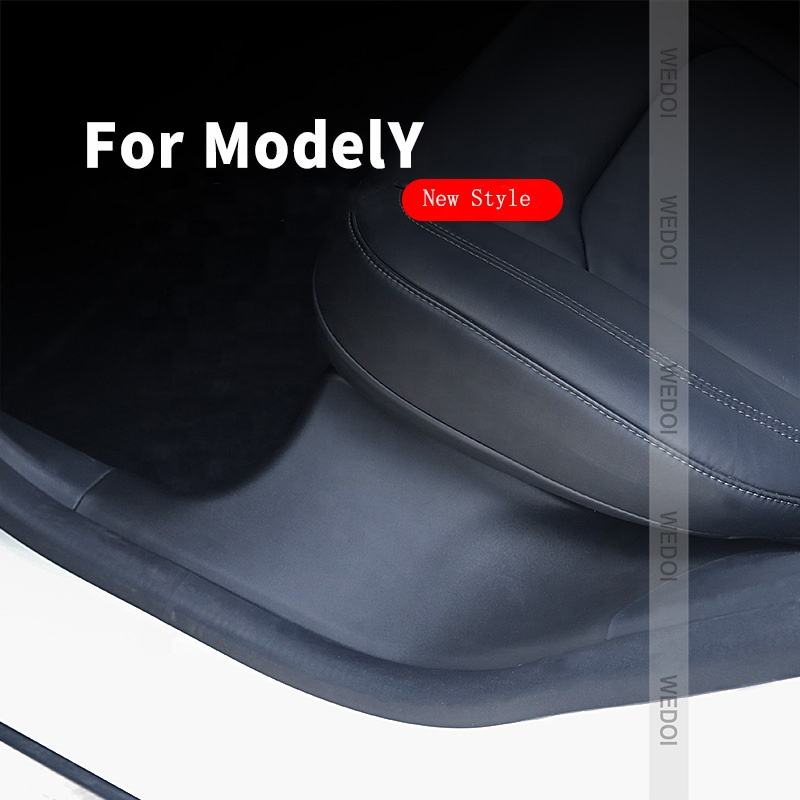 Protector de umbral de puerta trasera de TPE, cubierta de placa de desgaste para Tesla Model Y 2021 + pegatina de umbral de puerta de coche, tira de protección de Pedal