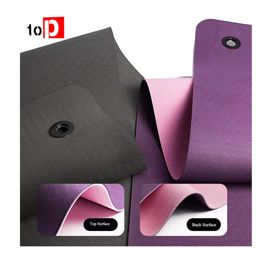 Tapete de Yoga de Caucho TPE Personalizado con Impresión Ecológica y Orificios para Colgar, Tapete de Yoga Negro con Bolsa, Fabricante
