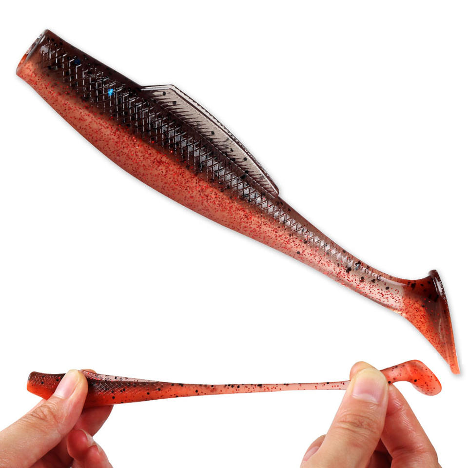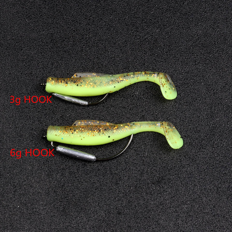 Señuelo blando TPR 8 cm flotante con cola en T, bicolor, imitación de gusano, paquete de 6, para pesca de atún y salmón en río, silenciador para cebo pequeño