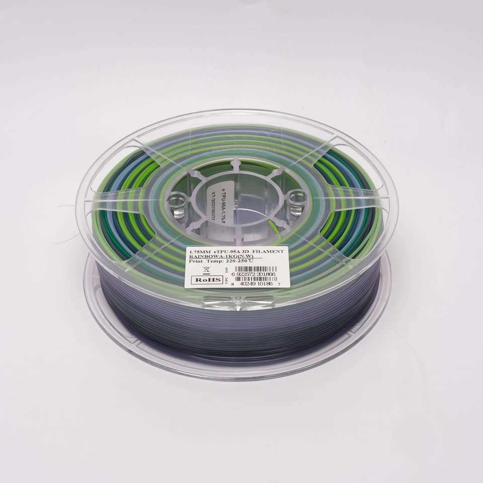 Filamento TPU Arcoíris para Impresora 3D, 1.75mm, 1kg, Filamento PLA