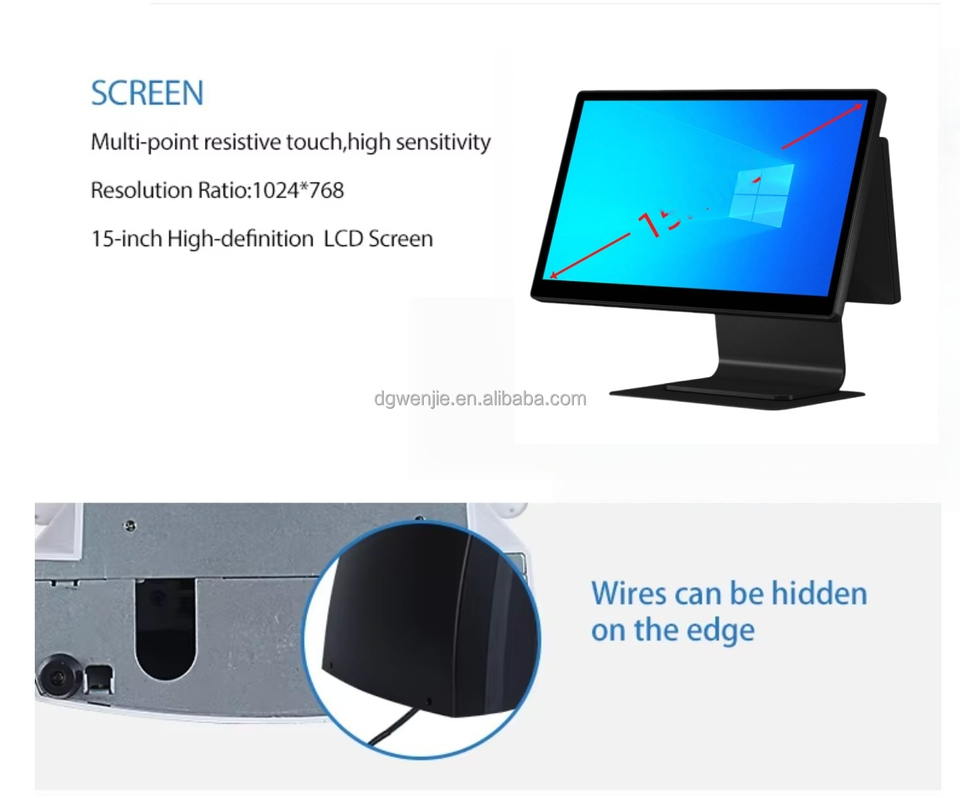 TPV Todo en Uno, Caja Registradora Eficiente de 15.6/15/17 Pulgadas, Sistema POS Completo con Pantalla Dual