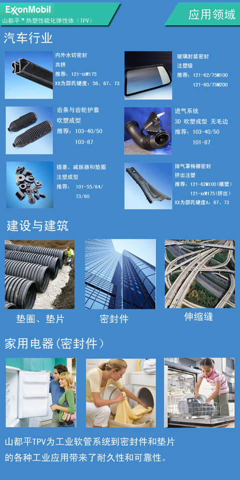 Piezas automotrices, Grados de alambre y cable, Materiales especiales para películas fundidas MaterialesAplicación