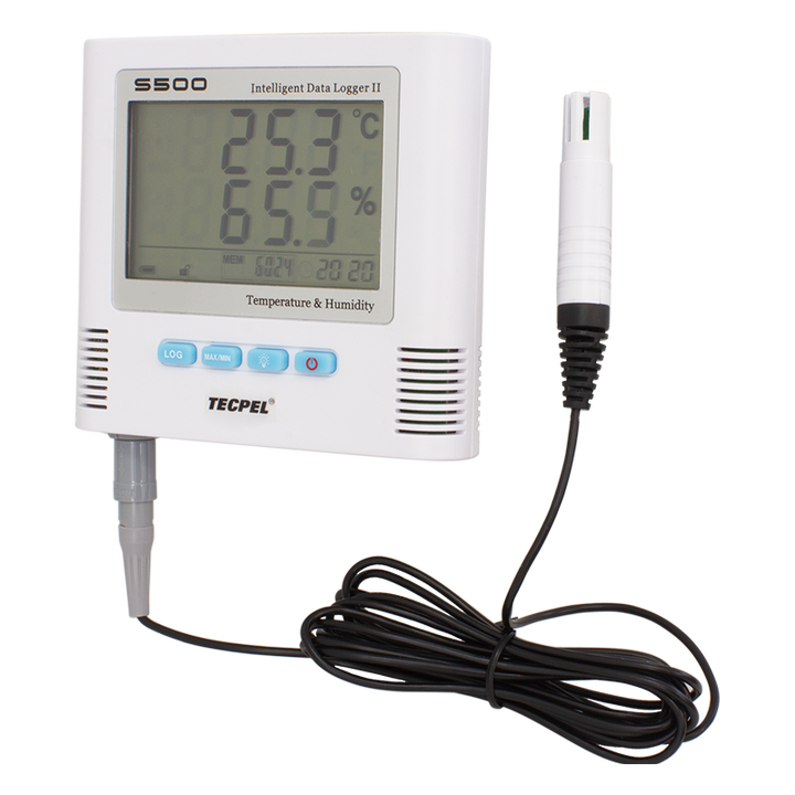 Registrador de Datos de Temperatura y Humedad TECPEL TR-S500 con Pantalla LCD, Rango de -40 °C a 85 °C para Controladores de HVAC
