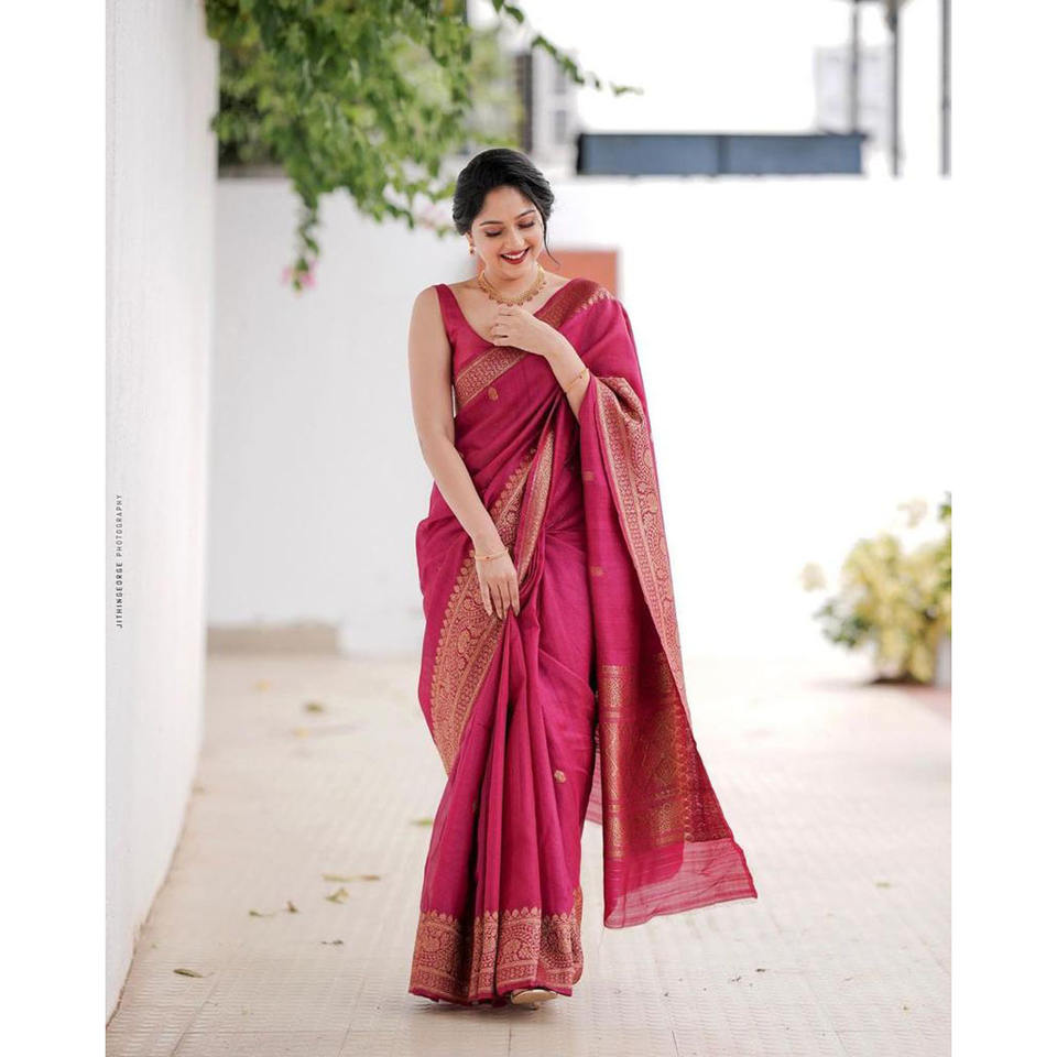 TRADICIONAL BANARASI SOFT JACQUARD TRABAJO SAREE CON BLUSA DESCOSADA ROSA
