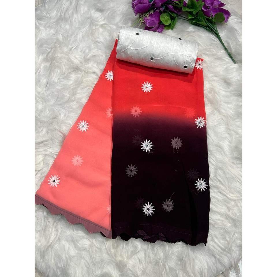 TREANDING BLOOMING GEORGETTE ESPEJO BORDADO TRABAJO SAREE CON BLUSA SIN COSTAR MULTI