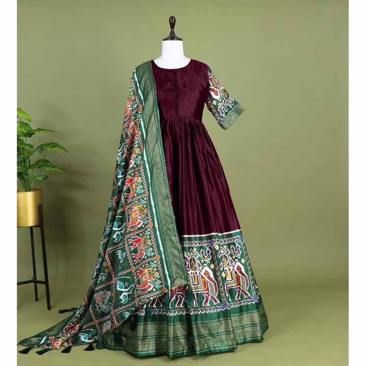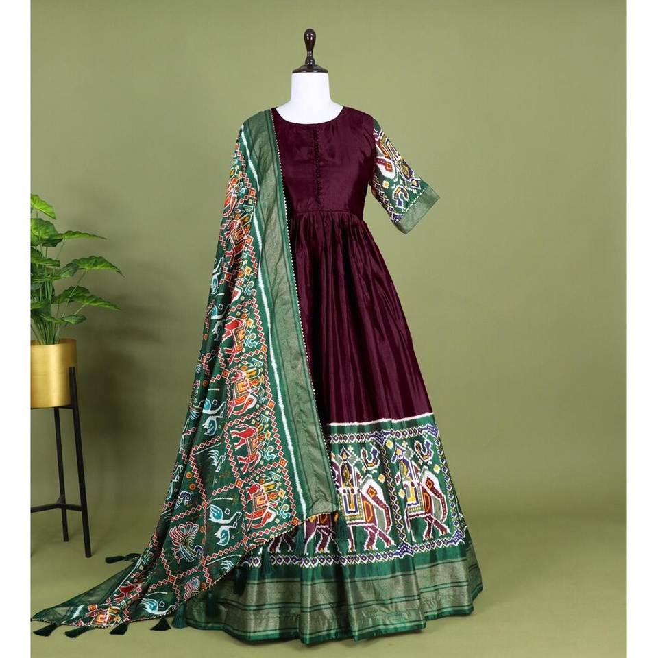 TREANDING DOLA ESTAMPADO DE PATOLA DE SEDA CON TRABAJO DE FOIL BATA DE BORDE CON DUPATTA MAROON