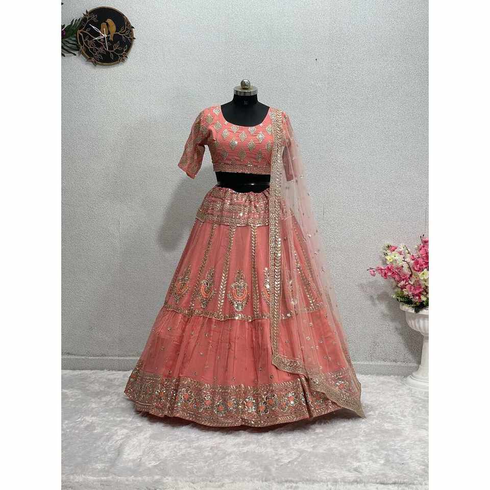 TRENDING GEORGETTE BORDADO SECUENCIA TRABAJO LEHENGA CHOLI CON DUPATTA PEACH