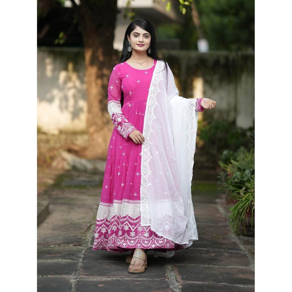 TRENDING GEORGETTE BORDADO TRABAJO BATA INFERIOR CON DUPATTA ROSA