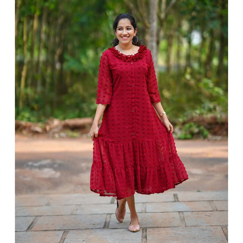TENDENCIA GEORGETTE POPCORN BOOTI FEBRICWITH LINNING WORK PARTY WEAR TOP DE UNA PIEZA ROJO