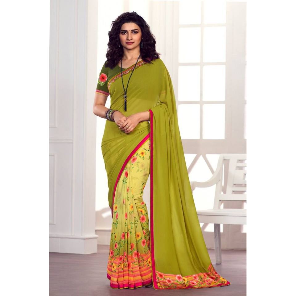 TRENDING GEORGETTE ENCAJE ESTAMPADO WIORK SAREE CON BLUSA SIN COSTAR MEHNDI