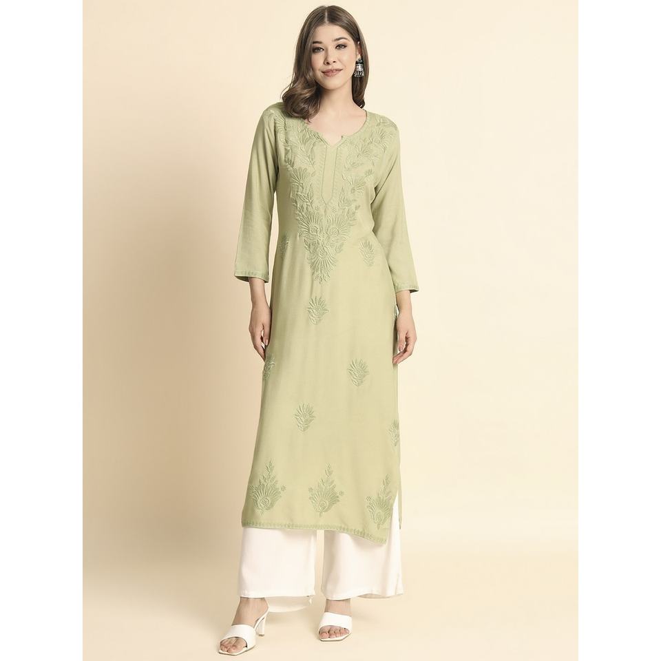 TENDENCIA LIVA RAYON LUCKNOWI CHIKANKARI TRABAJA SOLO KURTI PISTA