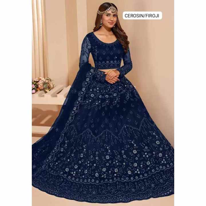 LEHENGA CHOLI DE MODA CON DISEÑO DE CADENA DE RED Y DUPATTA AZUL
