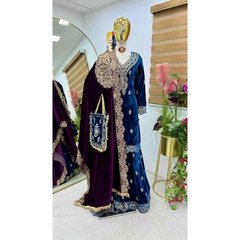 TRENDING TERCIOPELO BORDADO CODIFICACIÓN SECUENCIA TRABAJO TOP SHARARA CON DUPATTA SKY