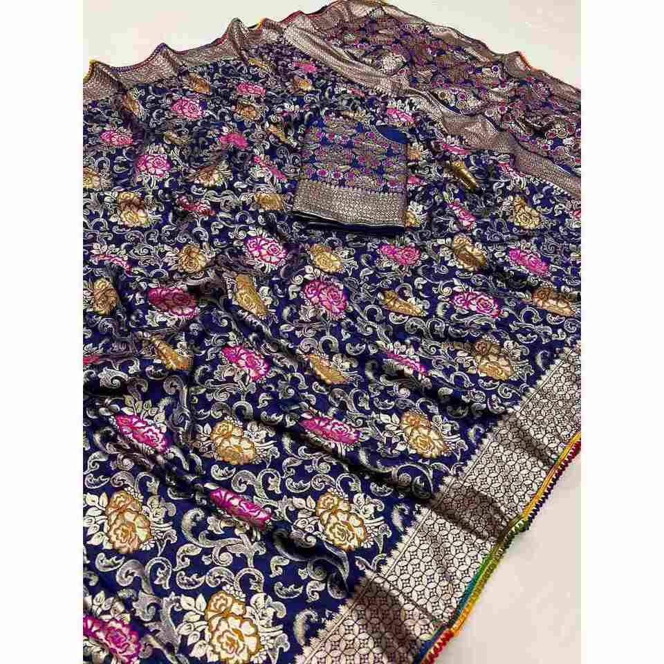 TRENDING VISCOSA TRABAJO DE TEJIDO SAREE CON BLUSA SIN COSTAR AZUL MARINO