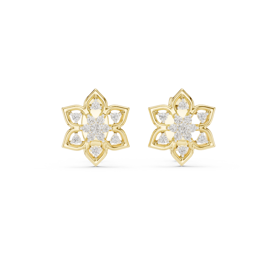 Pendientes de Diamantes Florales de Laboratorio de Última Tendencia, Engastados en Oro Amarillo de 18 Quilates, para Compromiso, Boda, Fiesta, Regalo de San Valentín, Uso Diario para Mujer