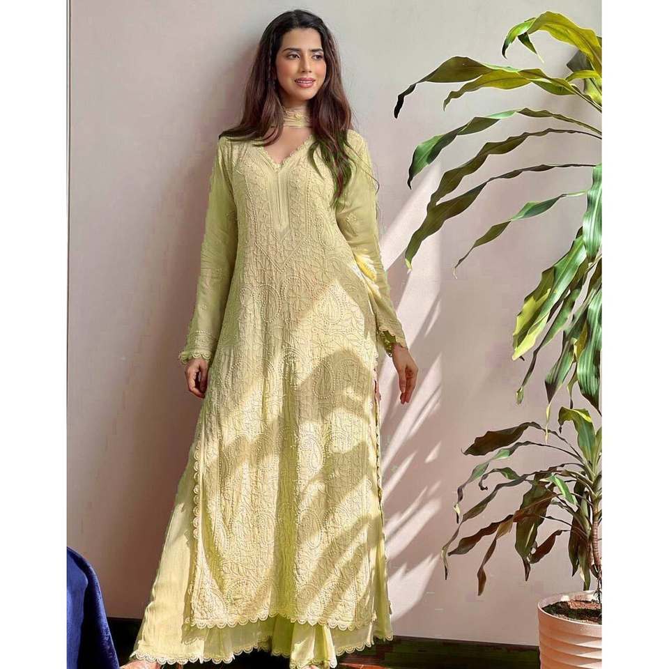 TOP DE TRABAJO DE HILO BORDADO DE GEORGETTE DE MODA PALAZZO CON DUPATTA LIMÓN