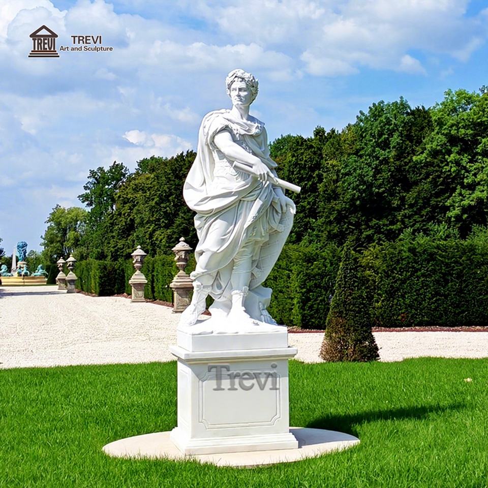 TREVI escultura tamaño real de Julio César en mármol, tallada a mano, figura del gran líder romano
