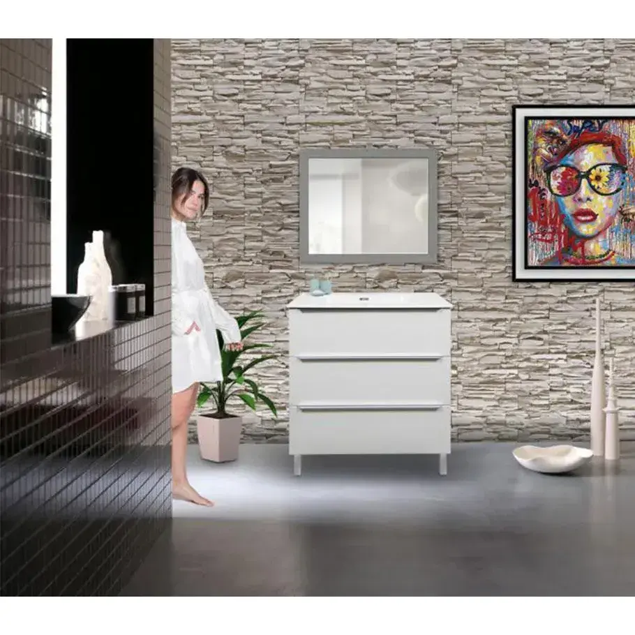 Armario de baño "TRIESTE" de 80 cm en fresno blanco con lavabo de cerámica estándar