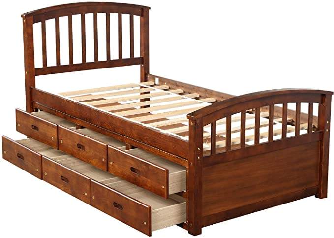 Cama de Madera de Pino con Cajones, Muebles TRIHO, Estándar Americano, Alta Calidad, Madera Maciza