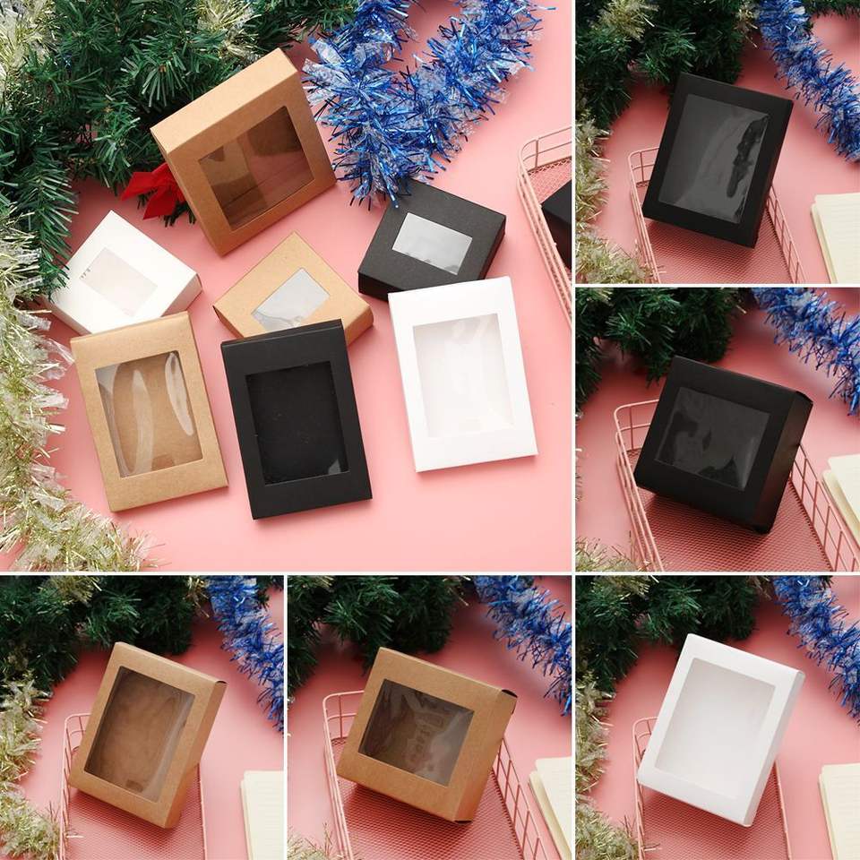 Caja de regalo de ventana de PVC transparente TRIHO, cartón corrugado, embalaje de pastel de caramelo, laminado mate en relieve, materiales reciclados