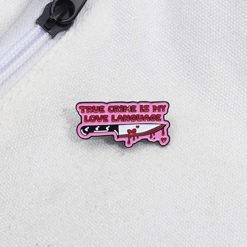 True Crime is My Love Language, alfileres esmaltados, broches de daga de sangre personalizados, insignias de solapa, ropa, joyería divertida, regalo para amigos