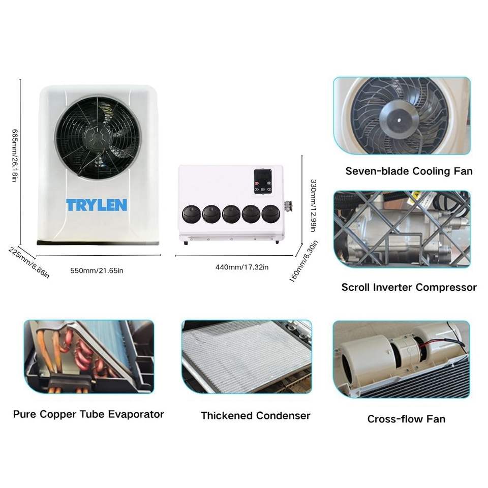TRYLEN 24V Rv Aire acondicionado 12V Camión Estacionamiento Aire acondicionado para Coches Caravana Camiones