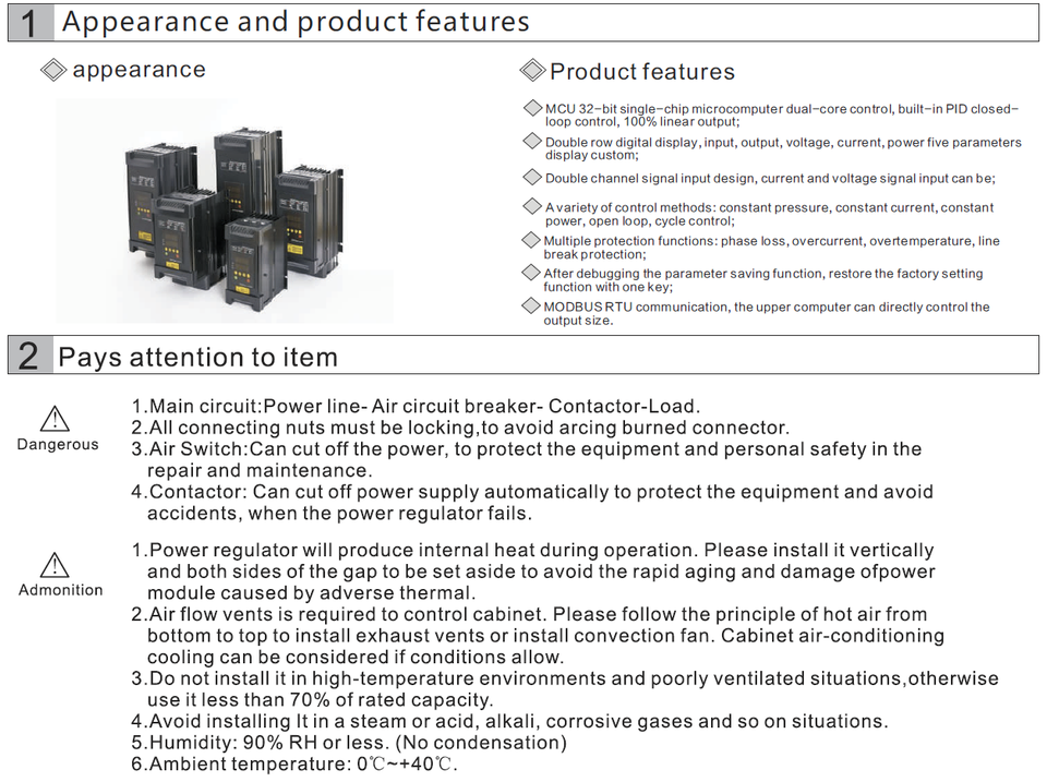 Regulador de Potencia SCR Trifásico TS 380VAC 480VAC 4-20mA Controlador SCR 125A con RS-485 Fuente de Alimentación CA Digital Regulada