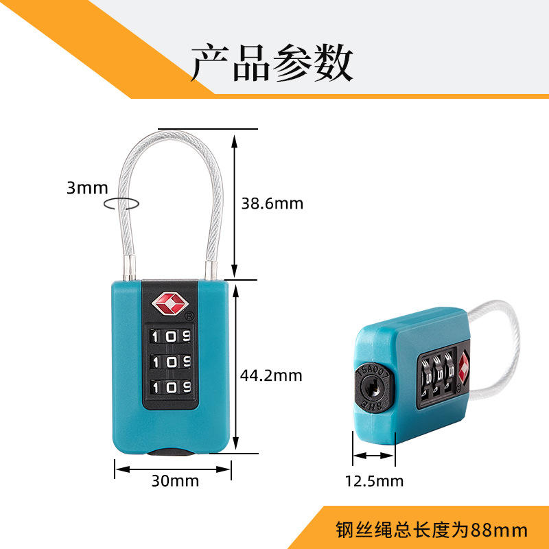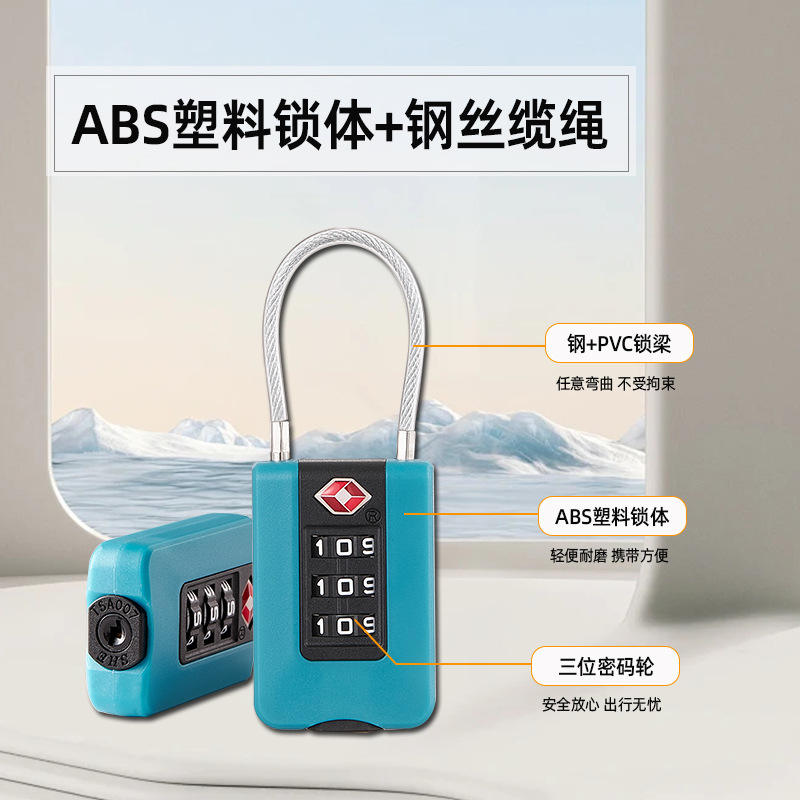Candado de combinación aprobado por la TSA para equipaje, mochilas de viaje, material ABS, candado de código de 3 dígitos con cable de acero