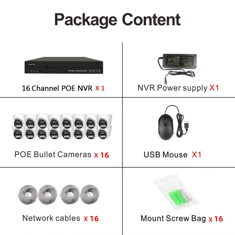 Nombre del Producto:Kit NVR de sistema de cámara POE de 16 canales