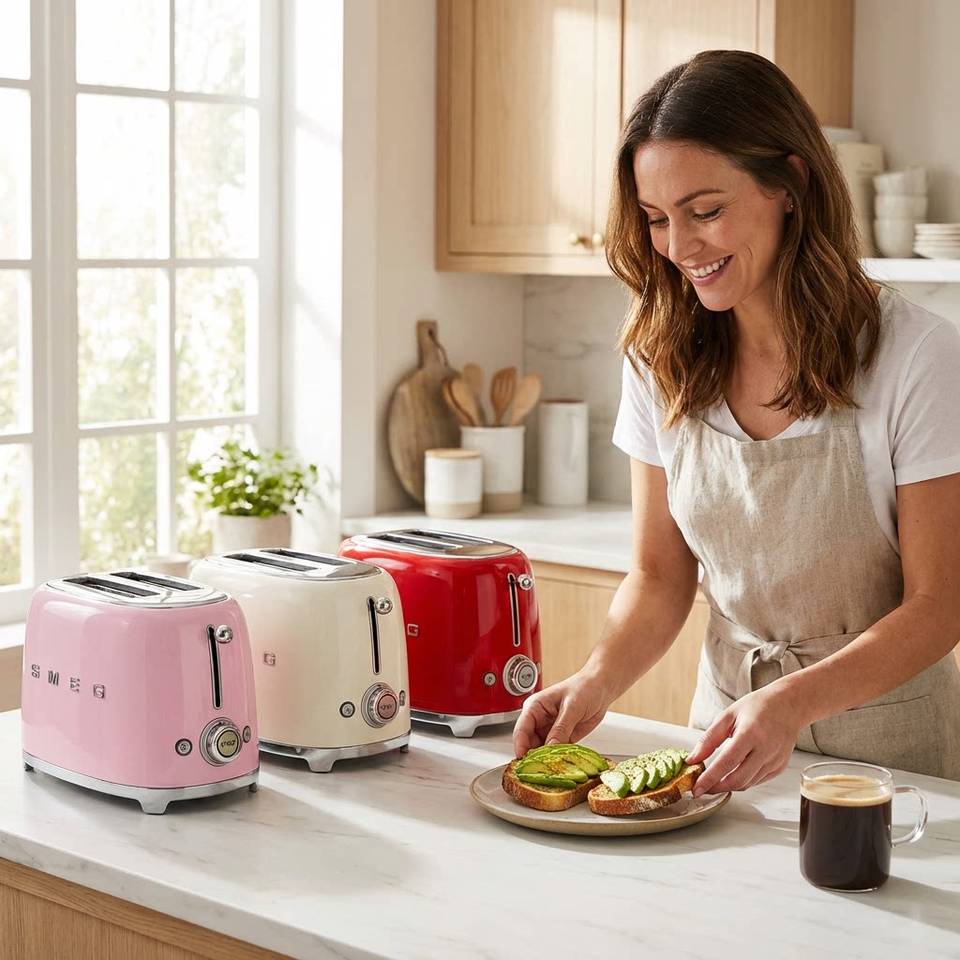 Tostadora Retro TSF01BLMUK de 2 Rebanadas con Ranuras Extra Anchas, 3 Opciones Preestablecidas, 950W, Negro Mate, Uso Doméstico