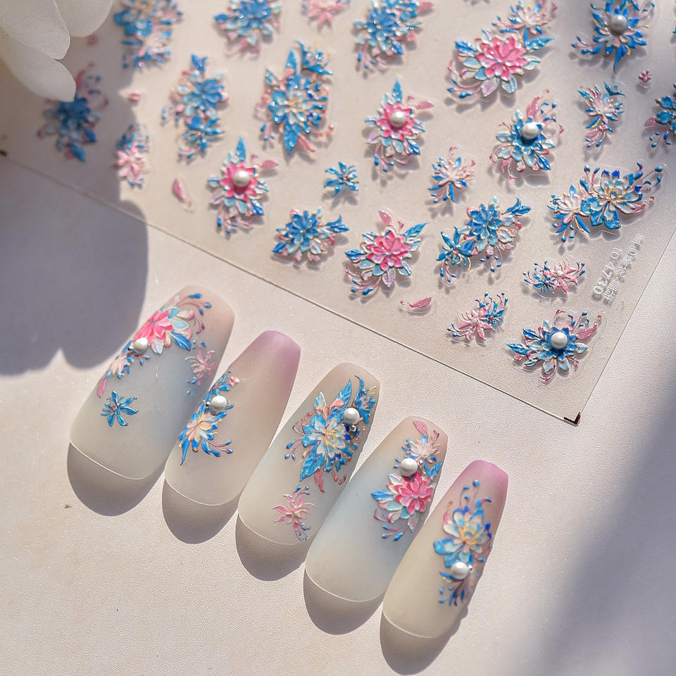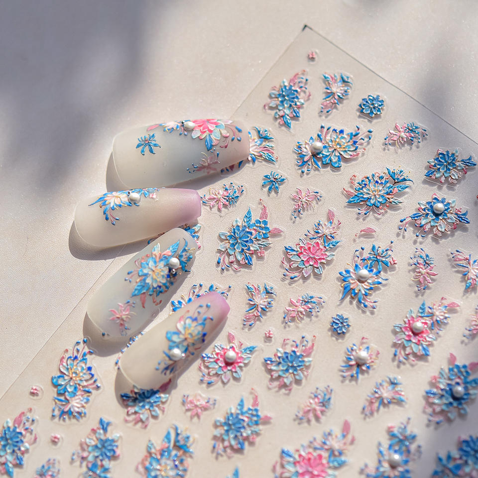 Nombre del producto:Etiqueta engomada rosada exquisita del clavo de Las Flores Azules 5D