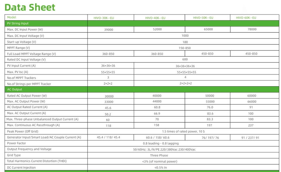 HIVO-50K-EU TTNERGY THREE PHASE HYBRID INVERTERNúmero de Modelo