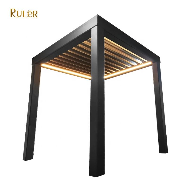 Pérgola Bioclimática Motorizada con Control por Aplicación TUYA, Pérgola de Aluminio Impermeable con Techo de Láminas Ajustables