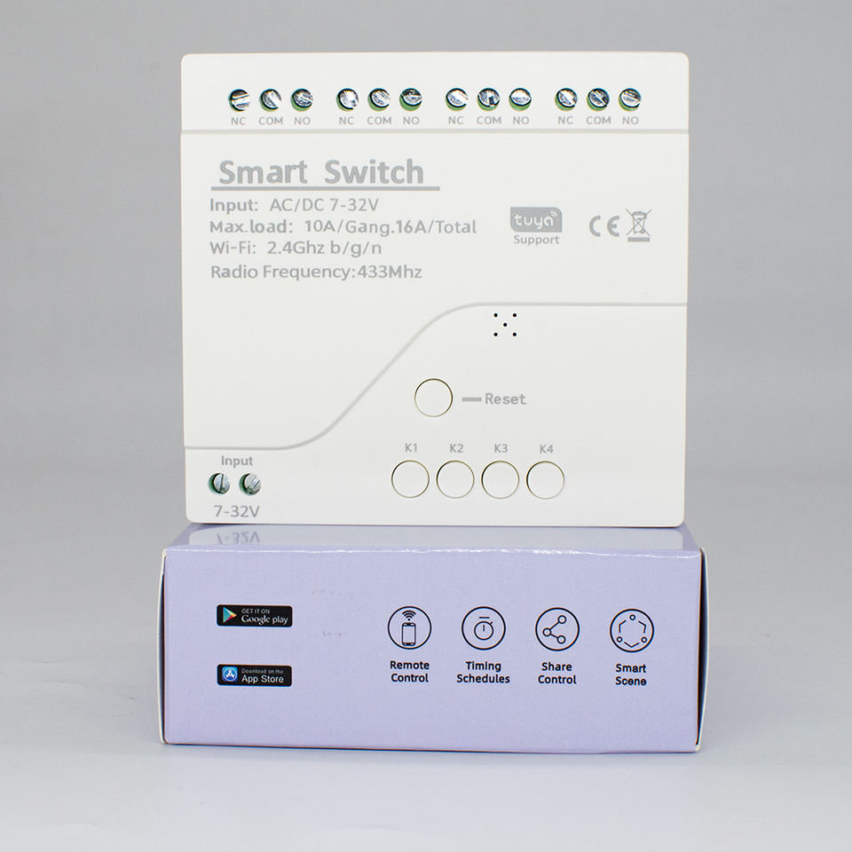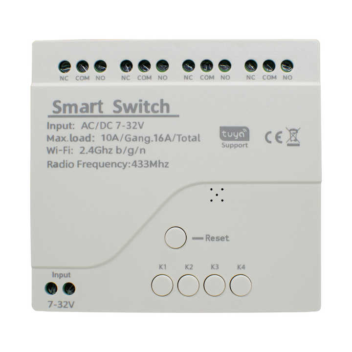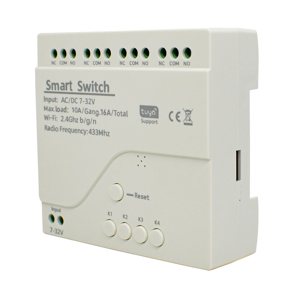 Interruptor Inteligente TUYA con Relé, Wifi y Control Remoto RF de 433mhz, Módulo Inalámbrico de 4 Canales, 7V a 32V, Receptor RF sin USB