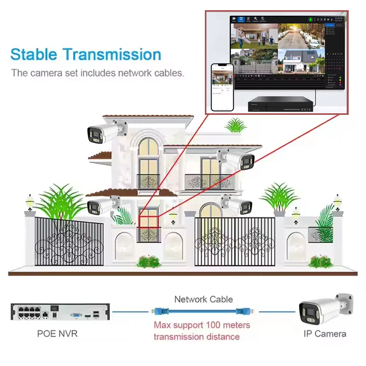 Sistema de Cámara de Seguridad IP PoE TUYA Smart App 8.0MP H.265 Conexión Estable y Fácil Aido Kit CCTV de 4 Canales