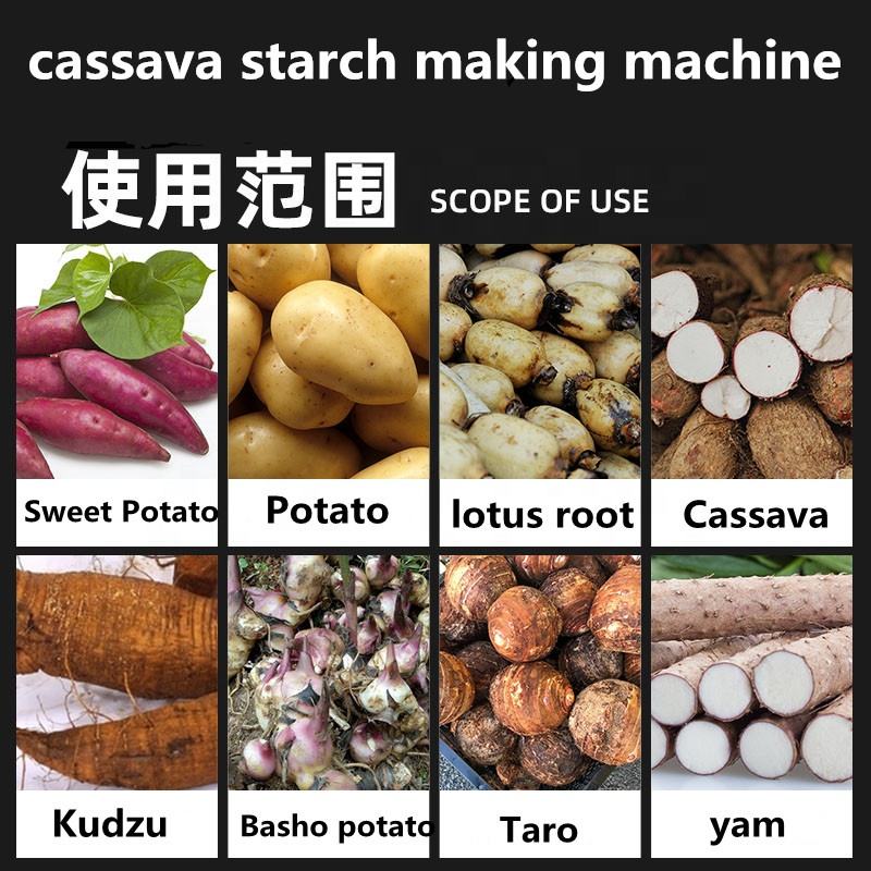 : Función:Almidón de mandioca que hace la máquina, Máquina de molienda de yuca, Máquina de la extracción del almidón de patata, Separador de pulpa de molienda de patata dulce, Máquina de separación de residuos de almidón, Patata de la yuca que machaca la máquina, Máquina del pulverizador del almidón de grano