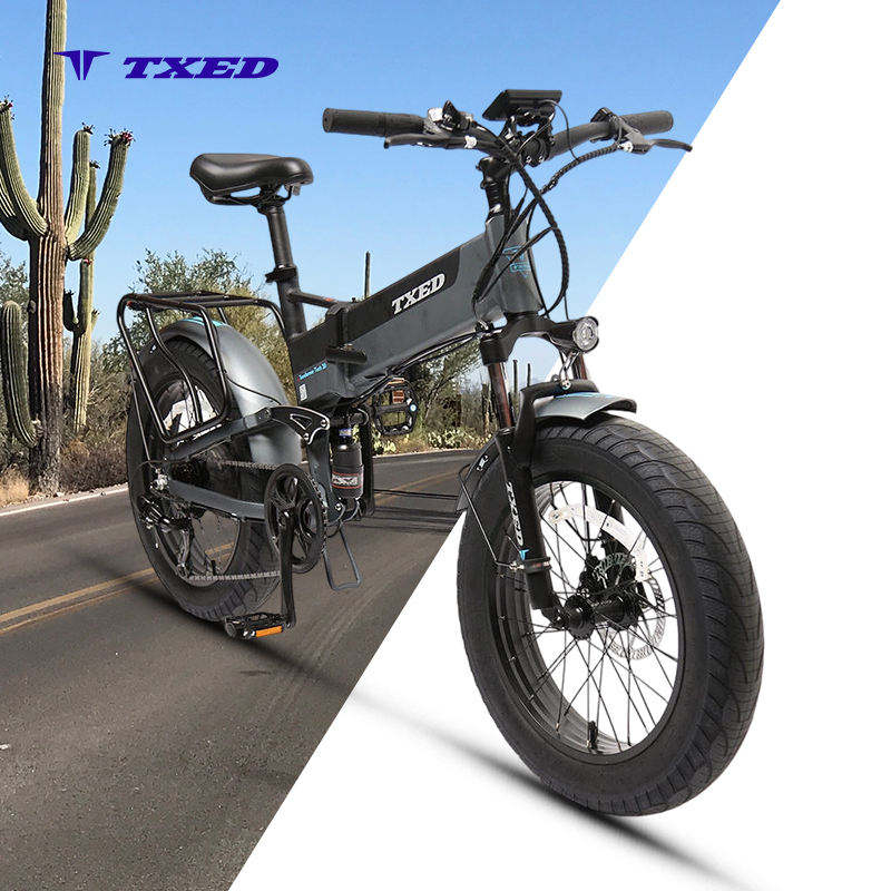 Bicicleta Eléctrica Plegable TXED de 20 Pulgadas con Llantas Gruesas, Motor Trasero de 48V 500W, Batería de 13Ah, 7 Velocidades