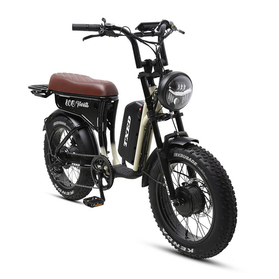 Motocicleta Eléctrica TXED de 7 Velocidades y 20 Pulgadas con Llantas Gruesas, Motor Delantero y Trasero de 500W, Batería de Litio de 48V y 20Ah, Moto Eléctrica