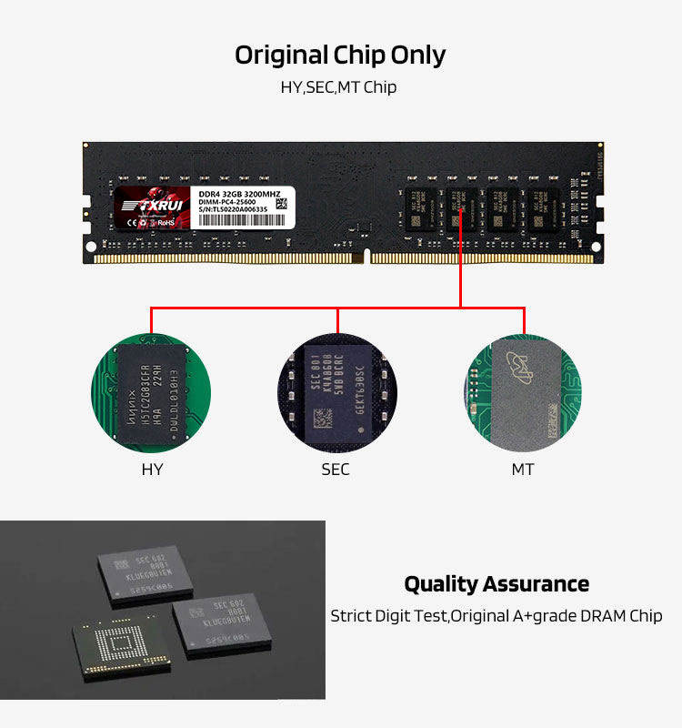 TXRUI - Memoria RAM Profesional para Ordenador de Escritorio DDR4 de 32 GB ECC, 2133 MHz/2400 MHz/2666 MHz/3200 MHz/3600 MHz, Disponible en Stock