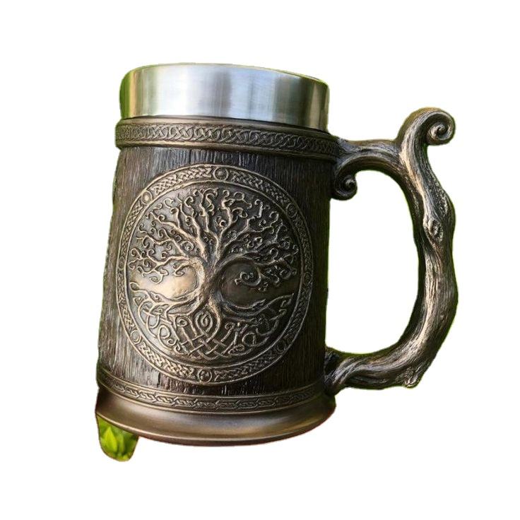 Taza de cerveza y café de cuerno para beber tallada vikinga natural hecha a mano típicamente personalizada para restaurantes de hoteles en casa de