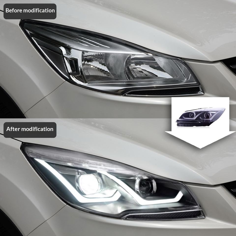 Conjunto de Faros Delanteros TYPY 2013-2016 para Ford Kuga, Lentes LED, Luces de Circulación Diurna, Intermitentes