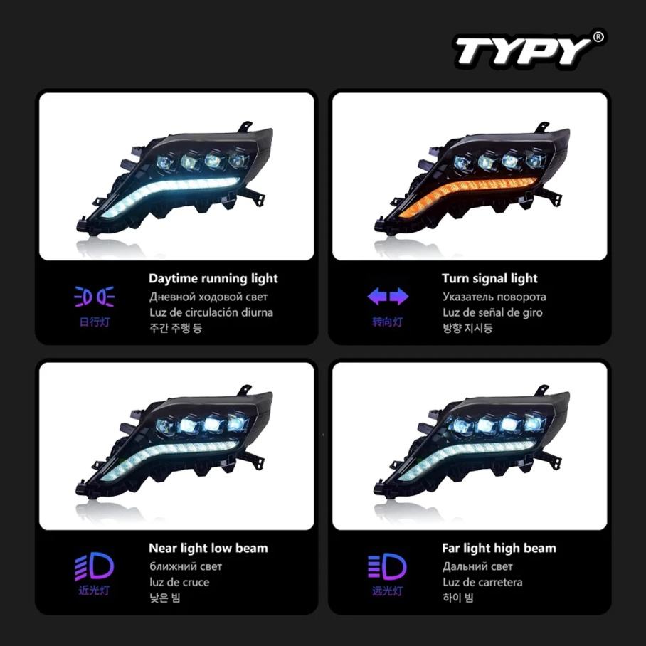 Faros Delanteros TYPY para Toyota Prado 2014-2017, Lámparas LED para Automóvil, Luces de Circulación Diurna, Señales de Giro Dinámicas, Accesorios para Automóvil