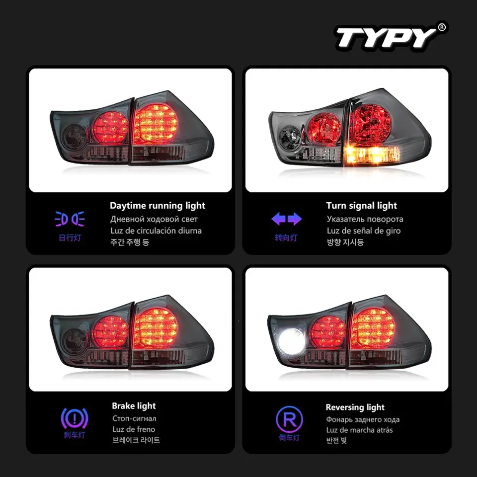 Kit de Luces Traseras LED TYPY para Lexus RX 2003-2008 con DRL y Señal de Giro Dinámica, 12V, Lente Ahumada/Tintada