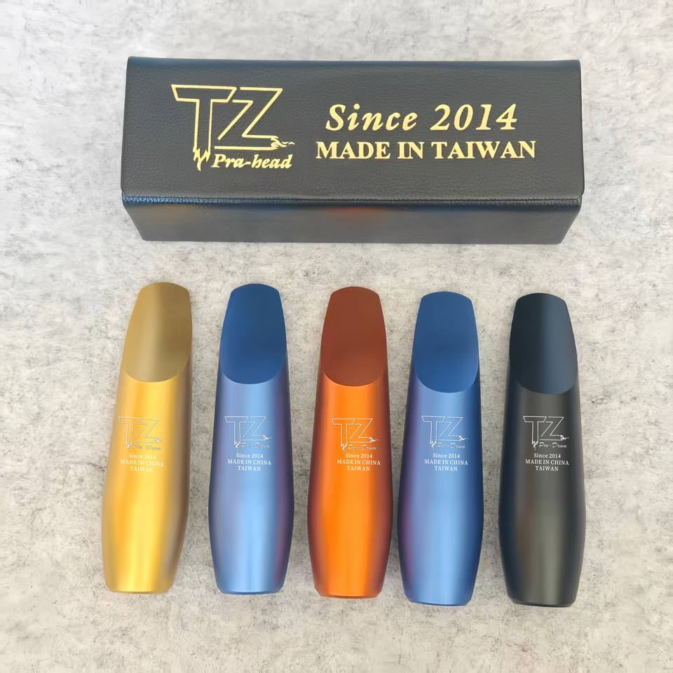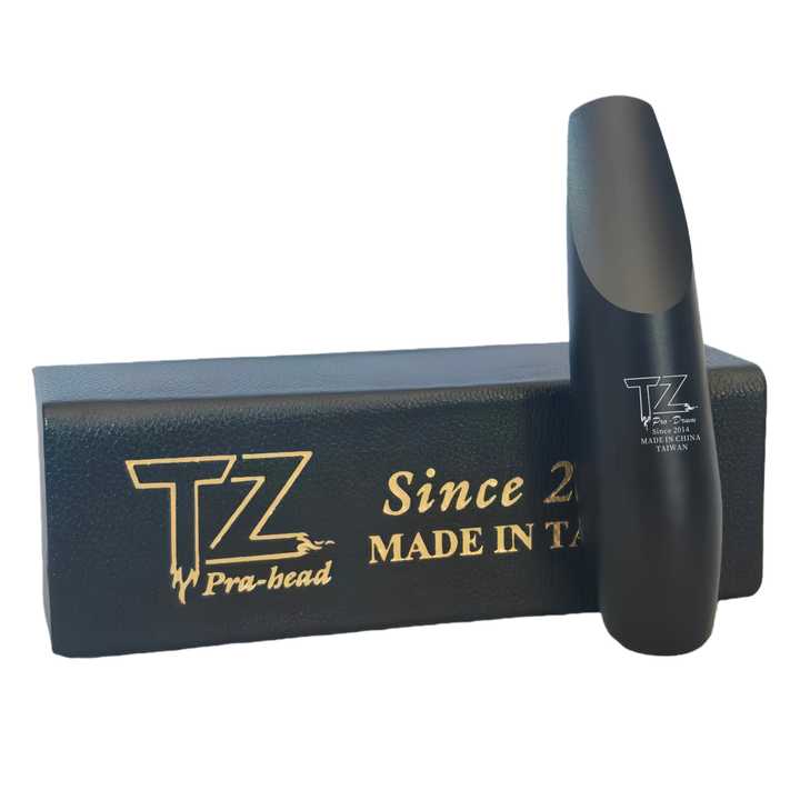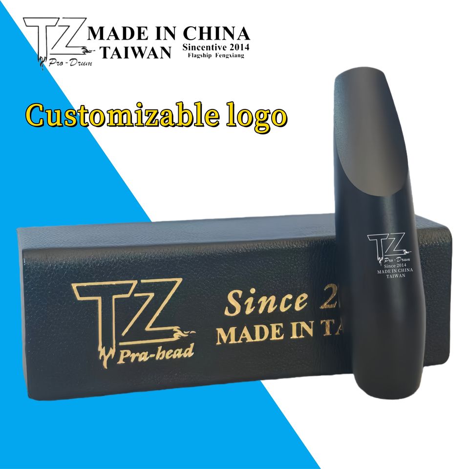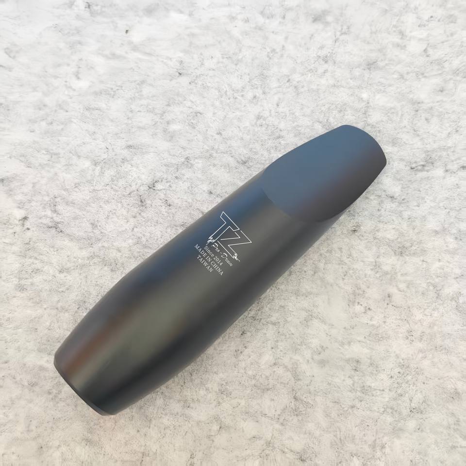 Boquilla para Saxofón Tenor de Venta Directa de Fábrica TZ, Boquilla de Aleación de Aluminio Negra, Ligera (0.25 kg), Embalaje en Caja de Cuero