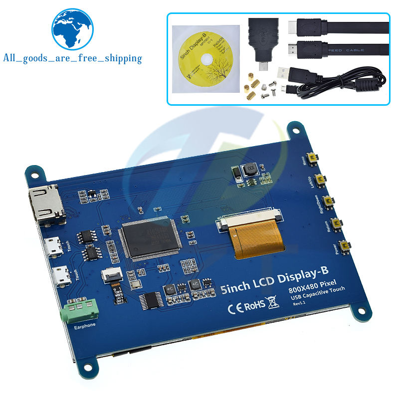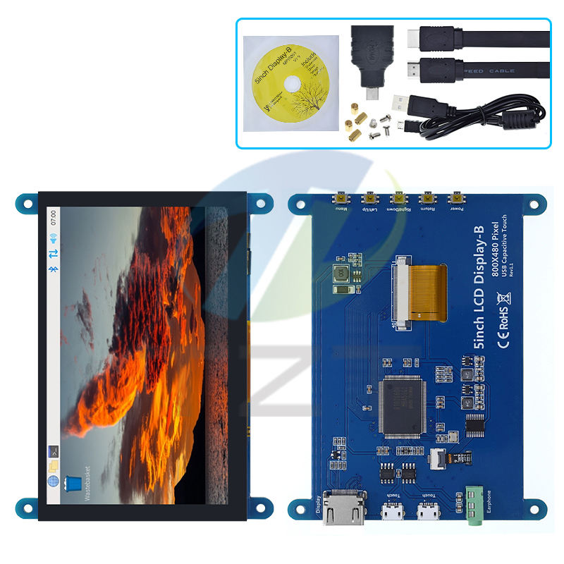 Monitor Portátil TZT de 5 Pulgadas HD MI 800 x 480 Pantalla LCD Táctil Capacitiva para Raspberry Pi 4 3B+/ PC/Banana Pi / ESP32